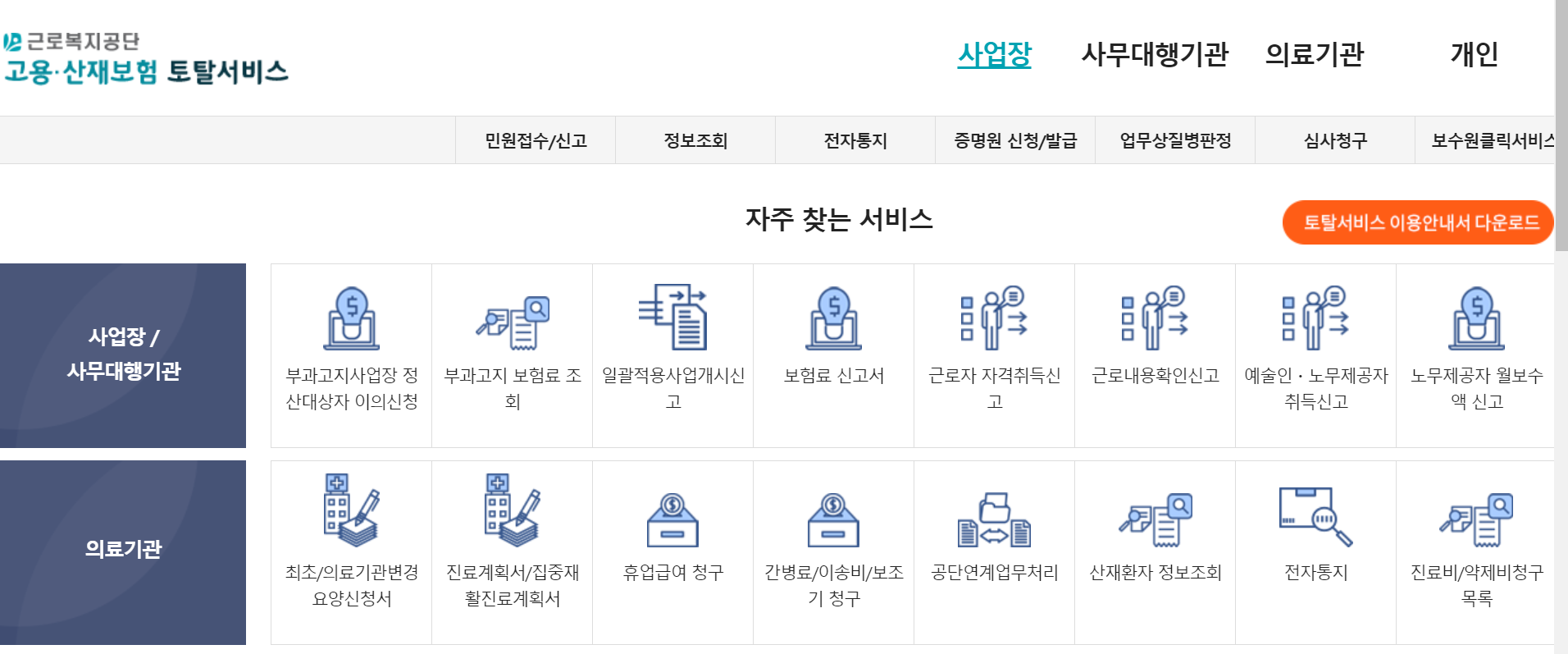 - 온라인 접수 가능: 고용·산재보험 토탈서비스