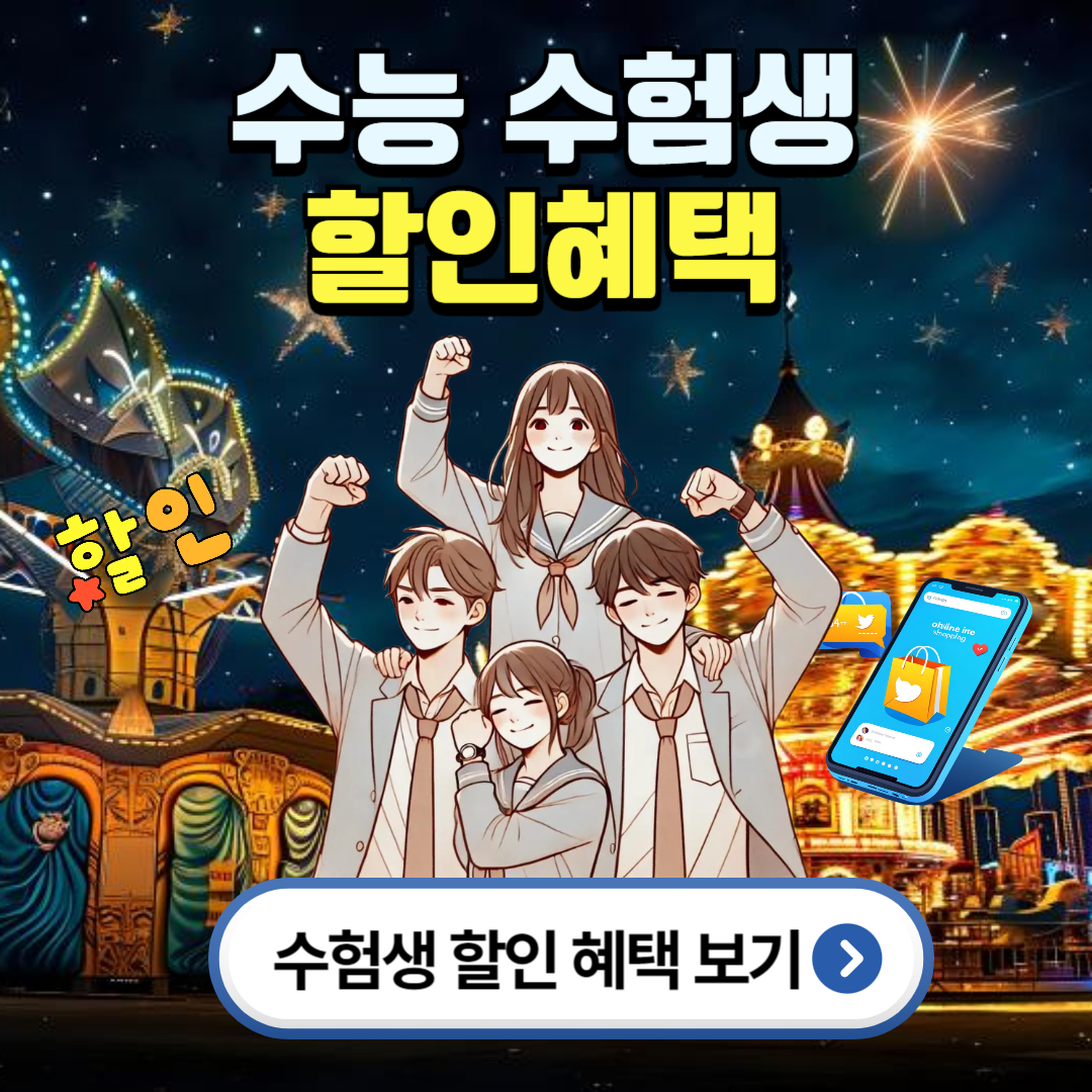 수험이 끝난 만큼 친구들과 스트레스를 확 풀어야겠죠? 대한민국의 인기 놀이동산에서 수험생을 위한 특별 할인이 기다리고 있어요!