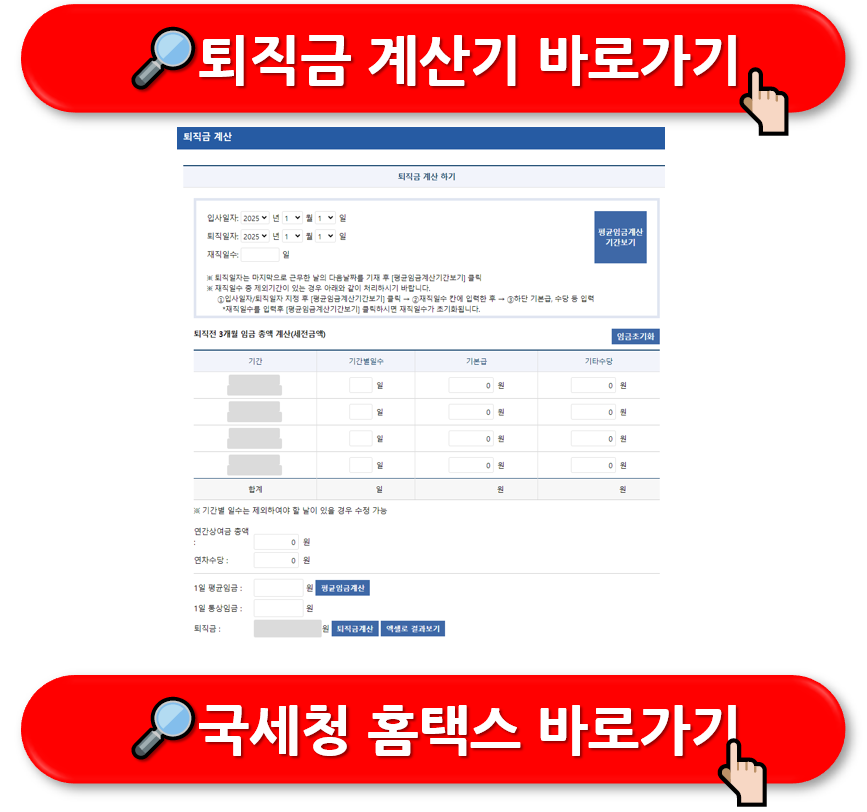 - 계속 근로 기간: 입사일부터 퇴직일까지의 전체 기간 포함