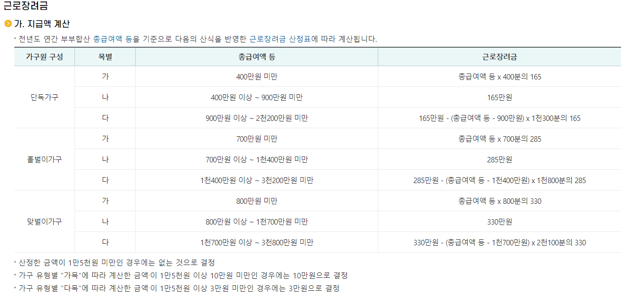 나의 근로장려금 계산해 보기