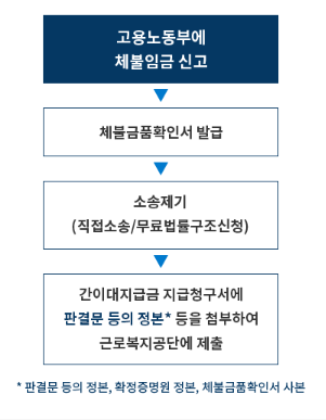 - 청구 기한: 판결 확정일로부터 1년 이내 또는 체불임금등 사업주 확인서 발급일로부터 6개월 이내