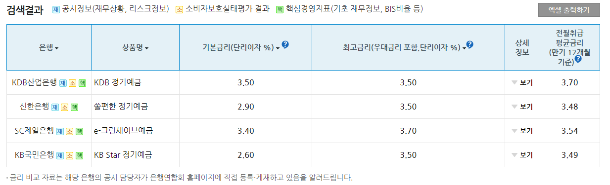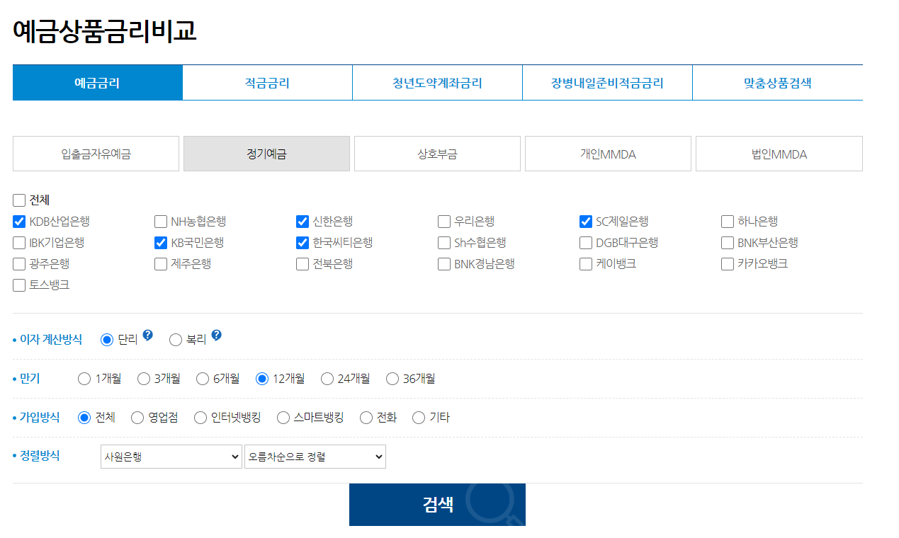 위의 사진과 같이 금리 검색 결과가 나옵니다.